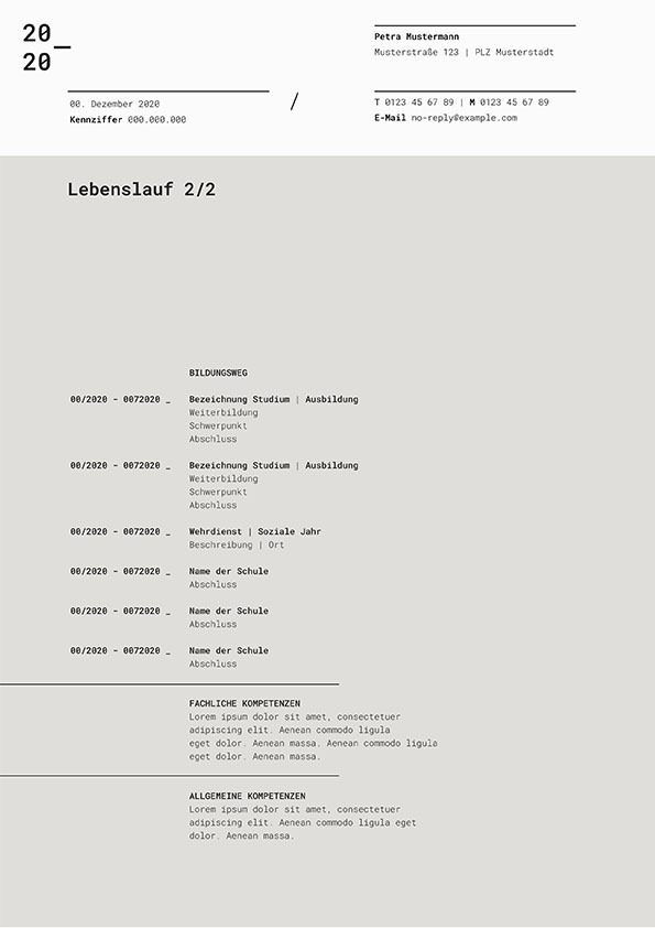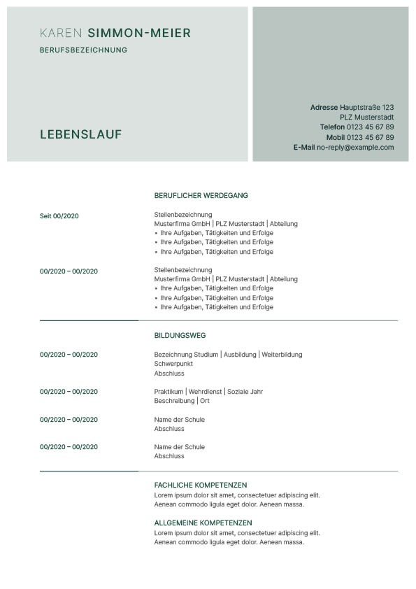 Eine Bewerbungsvorlage, die schlichte Eleganz mit übersichtlichem Design verbindet.