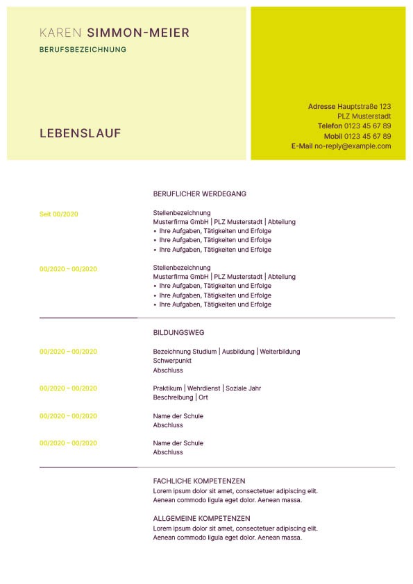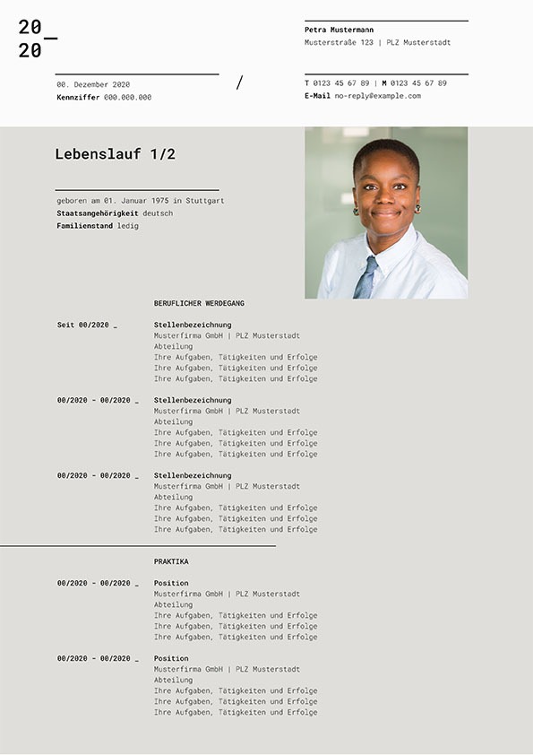 Eine Bewerbungsvorlage mit Strukturiertem Aufbau.